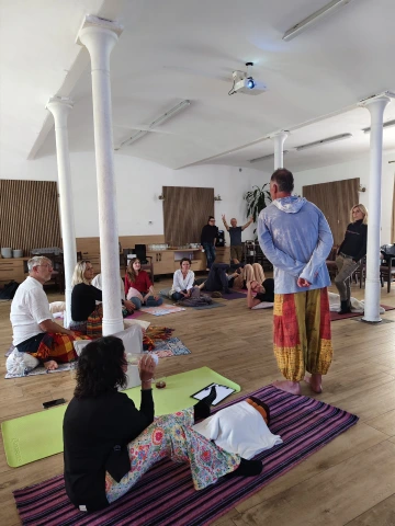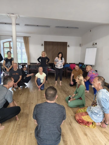 Dopolední část vedla Evellinn Šumberová, která přinesla vhled do principů východní medicíny a vědomého dechu. Skupina se sjednotila v kruhové meditaci pro uzemnění a poté se uvolnila v tanci – s myšlenkou: Dovolit si vědomě prožít pohyb těla.